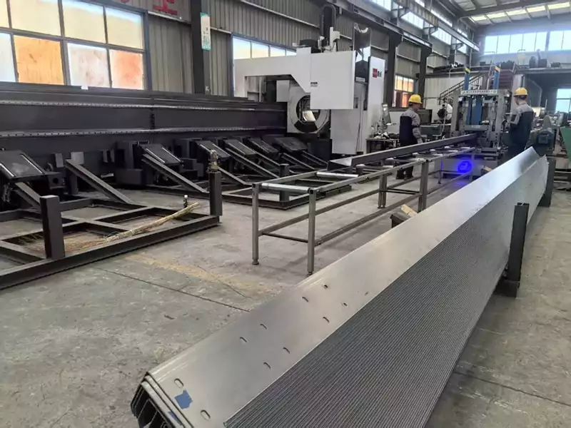 2. Διάτρηση: Εξοπλισμένο με μονάδα διάτρησης CNC, υποστηρίζει διάτρηση με πολλές γωνίες ιστών και φλαντζών, με ανοχή διαμέτρου οπών ±0,2 mm και ακρίβεια απόστασης οπών ±0,3 mm. Μπορεί επίσης να παράγει ταυτόχρονα οπές που συμμορφώνονται με τα πρότυπα σύνδεσης χάλυβα τομής καισαρικής των ΗΠΑ (όπως οπές προσαρμογέα Simpson Strong-Tie).