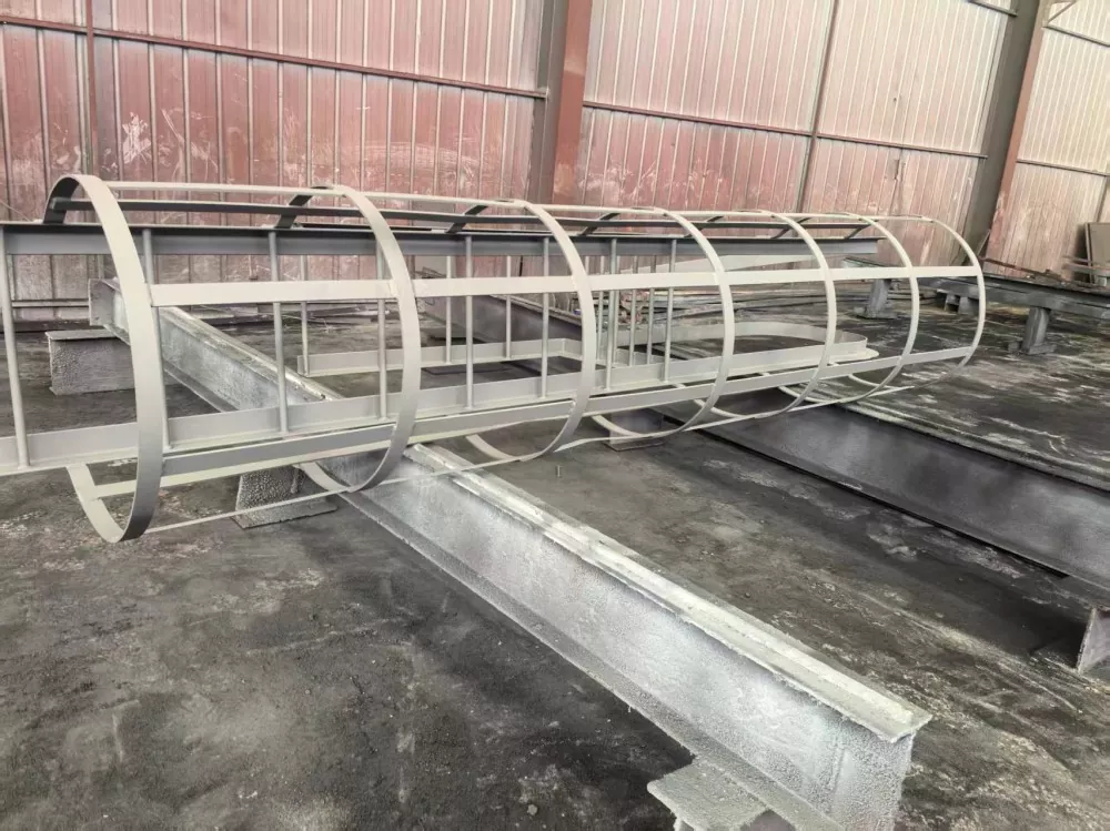 Εγκατάσταση προστατευτικών κιγκλιδωμάτων: Για σκαλοπάτια που υπερβαίνουν τα 3 μέτρα ύψος, τα προστατευτικά κιγκλιδώματα πρέπει να τοποθετούνται 2,5 μέτρα πάνω από το έδαφος. Η διάμετρος του προστατευτικού κιγκλιδώματος πρέπει να είναι μεταξύ 700 mm και 800 mm. Οι οριζόντιοι δακτύλιοι πρέπει να είναι κατασκευασμένοι από στρογγυλό χάλυβα 16 mm, με απόσταση μεταξύ των δακτυλίων από 300 mm έως 450 mm. Οι κάθετες ράβδοι οπλισμού πρέπει να είναι κατασκευασμένες από στρογγυλό χάλυβα 12 mm, με τουλάχιστον τέσσερις ράβδους ομοιόμορφα τοποθετημένες. Ο κλωβός ασφαλείας πρέπει να τοποθετείται συνεχώς στην κορυφή της σκάλας ή της πλατφόρμας ανάπαυσης. Συνδέσεις και στερέωση