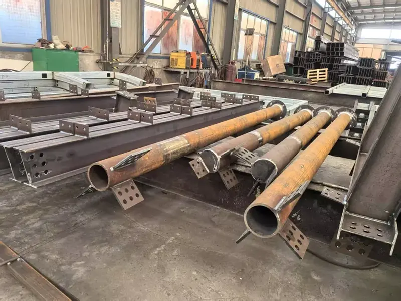 Ο χάλυβας προκατασκευάζεται στο εργοστάσιο επεξεργασίας σύμφωνα με τα σχέδια σχεδιασμού με κοπή, συγκόλληση, γεώτρηση κ.λπ. για να κατασκευαστούν διάφορα εξαρτήματα, όπως δοκοί χάλυβα, χαλύβδινες στήλες, παστίνες κλπ. Κατά τη διάρκεια της διαδικασίας προκαταβολής, τα πρότυπα τεχνολογίας επεξεργασίας εφαρμόζονται αυστηρά για να εξασφαλιστεί η διαστάσεων ακρίβειας των εξαρτημάτων. Για παράδειγμα, κατά τη δημιουργία χαλύβδινων δοκών, το χάσμα μεταξύ της πλάκας φλάντζας και της πλάκας ιστού, της ποιότητας συγκόλλησης κλπ. Πρέπει να πληροί τις απαιτήσεις των προδιαγραφών. Τα επεξεργασμένα εξαρτήματα αριθμούνται και σημειώνονται για εύκολη μεταφορά και επιτόπια συναρμολόγηση.